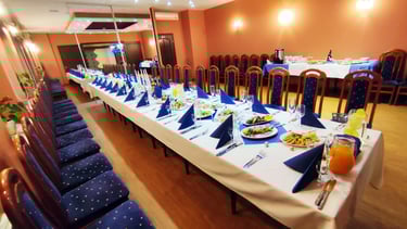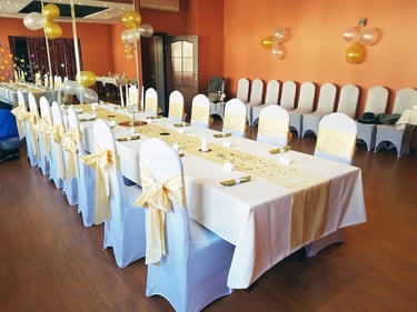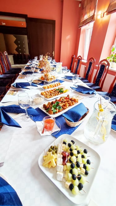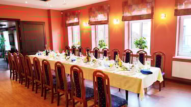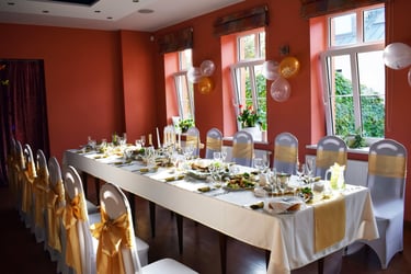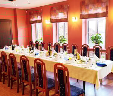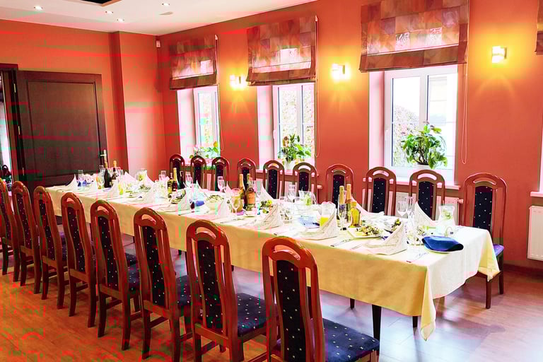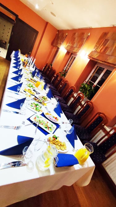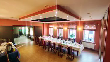 Our spacious ballroom is capable of hosting up to 50 guests. The pricing structure can be tailored to your specifications, with an initial cost of 40 € per person.